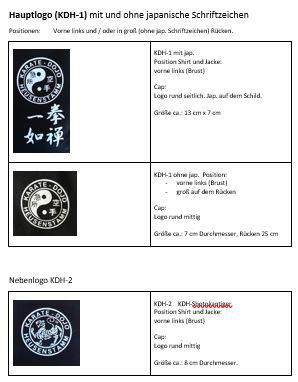 Hauptlogo ohne japanisch KDH-1; Position auf Shirt und Jacke: vorne links (Brust), ggf. groß auf dem Rücken.; CAP: Logo mittig; Größe ca 7 cm, Rücken 25 cm. |