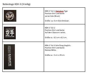 Nebenlogo KDH-2; KDH-Shotokan-Tiger; Position Shirt und Jacke: Vorne links (Brust); CAP: Logo mittig; Gröe ca. 8 cm. |